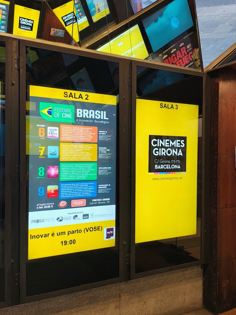 De 6 a 9 de outubro, a Prosa Press participou do Festival de Cine Brasil e Innovación Tecnológica, realizado nos Cinemes Girona, em Barcelona. O evento foi idealizado e organizado pelo Consulado-Geral do Brasil em Barcelona, sob coordenação de Luis Fernando Corrêa da Silva Machado, chefe do Setor de Promoção Tecnológica e Comercial, e integrou a programação do Mês da Ciência, Tecnologia e Inovação do Brasil.